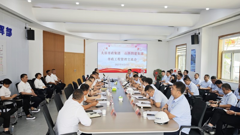 9月15日,山西四建集團有限公司黨委書記、董事長鄭永春一行27人赴太原市政集團迎澤大街(西段)地下管網(wǎng)更新改造工程進行學習交流,雙方圍繞市政工程管理開展座談交流。集團公司領導溫慧武、王志強、王增先、高鴻參加座談。